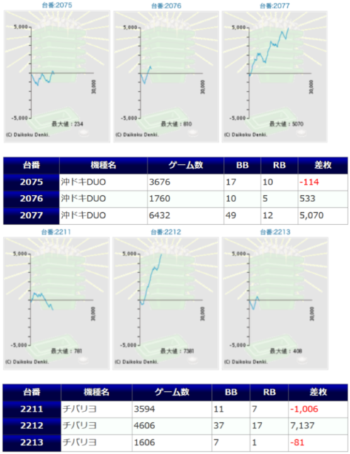 「チバリヨ」から+6,170枚「沖ドキDUO」から+5,875枚「番長ゼロ」+5,428枚オーと多数の台で大爆発が見られる等、素晴らしい結果になりました。