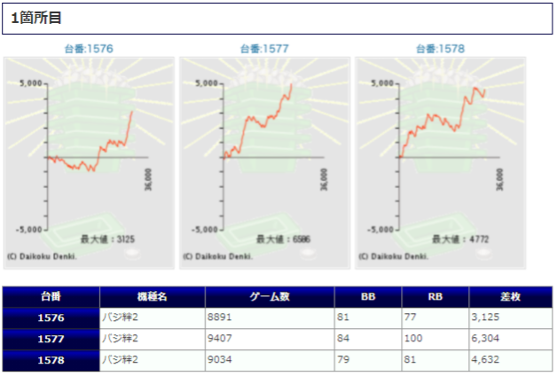 ★全体的に投入量も多く、また出玉率も安定しており、ユーザーもかなり同店の仕掛けには信頼を置いていることが読み取れる実践になったと思います。今回は連休の中日でしたが、しっかり用意されていましたので今後の展開にも期待できそうですね。