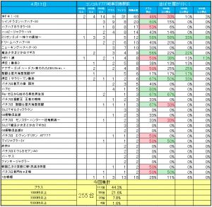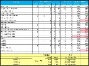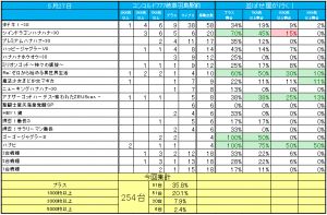 10台以上の機種全体では60/142台がプラスで勝率は42%とあまりよくなかったですが、3000枚オーバー17台はまずまずだったんじゃないかと思います。