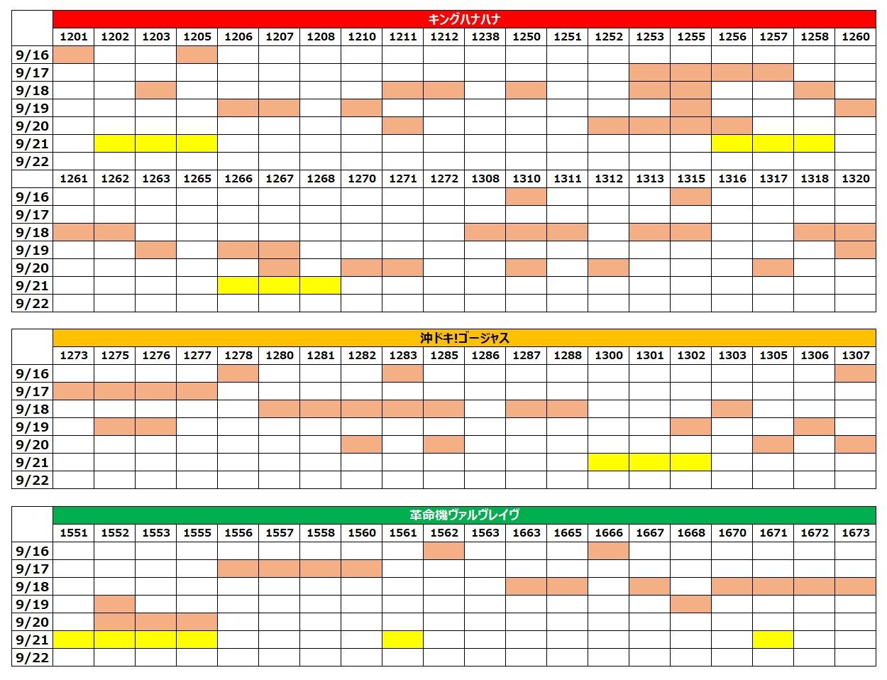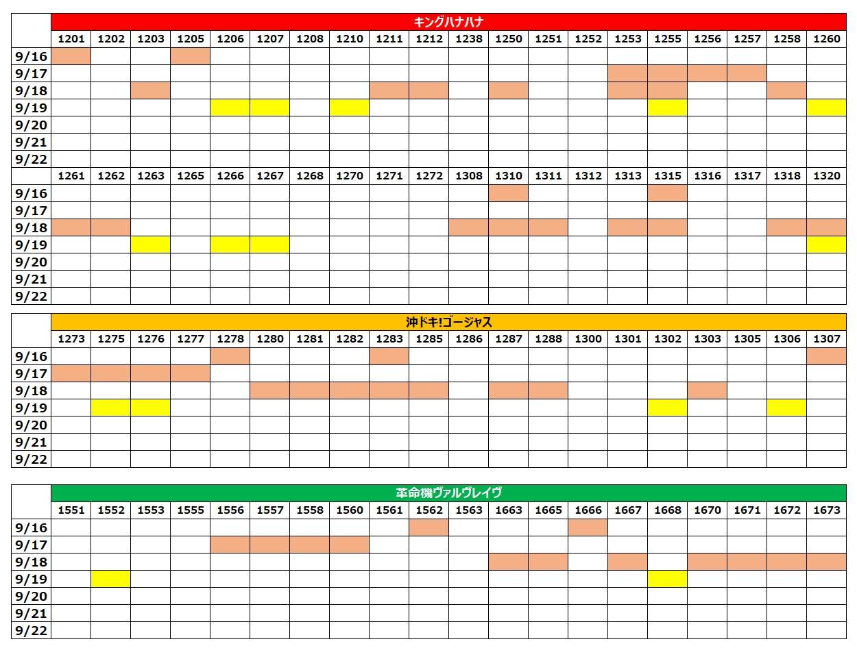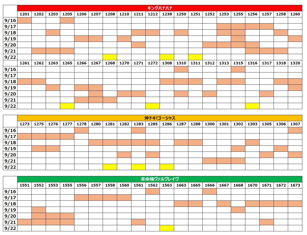 開催3日目はキンハナの扱いが手厚く、合計28台の【⑥】が存在していたと思われます。