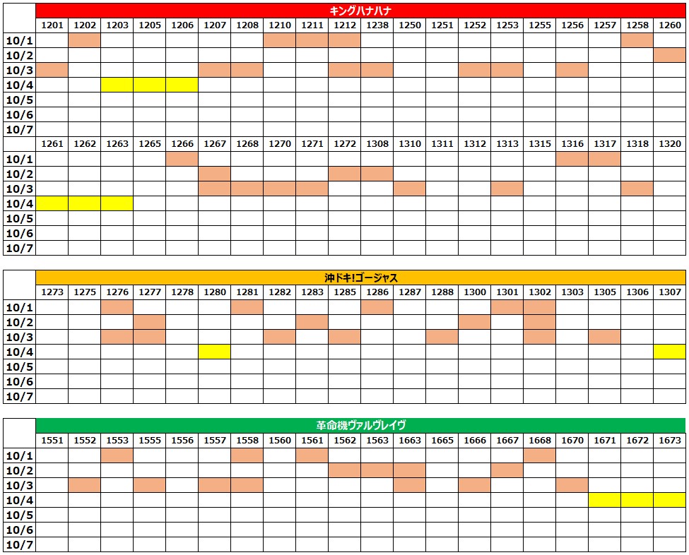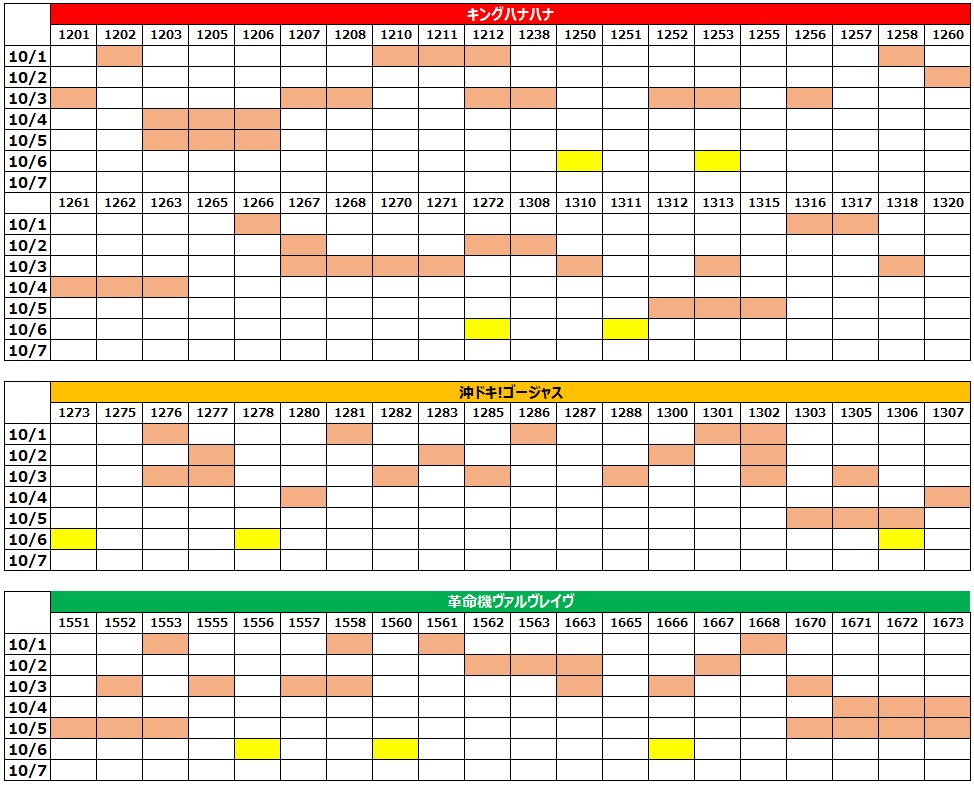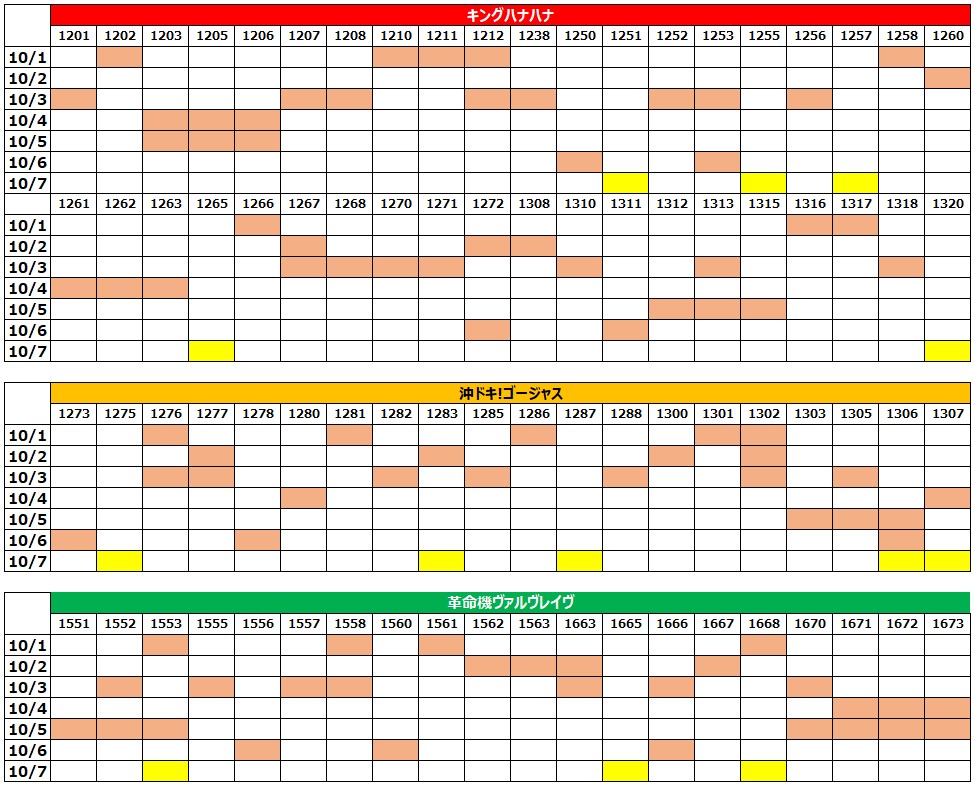最終日の内容を見てみると、台数を多く残していたキングハナハナに6台と手厚く仕掛けがあったようで、合計10台の【⑥】が存在していたと思われます。