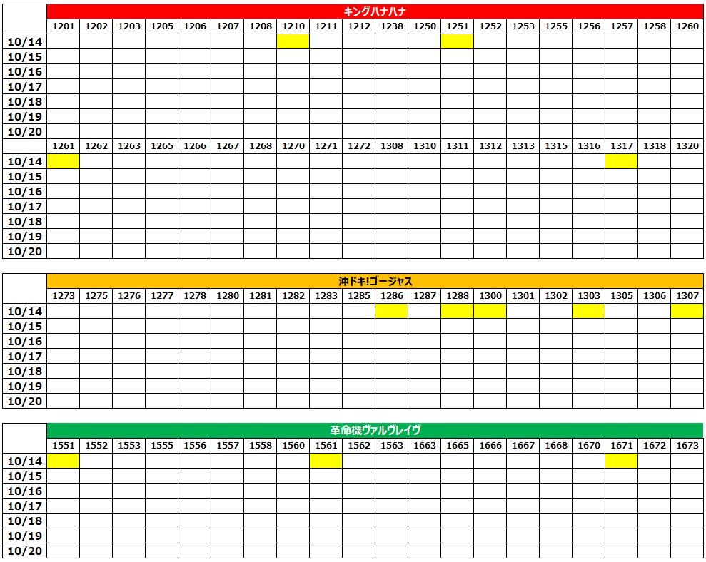 東京喰種が前日と全く同じ台への仕掛けと意表をついてきましたが、同機はまだ14台も対象となっていない台があるため、かなり強気に狙っていけるでしょう。