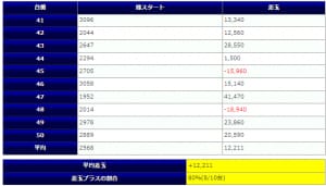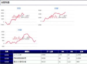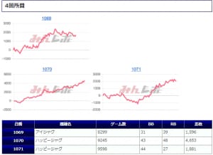 6台の平均稼働は8,617Gとブン回しで、しっかり結果が伴っていますので信憑性が高く、一目で状況の良さが見て取れる結果になっていますね。