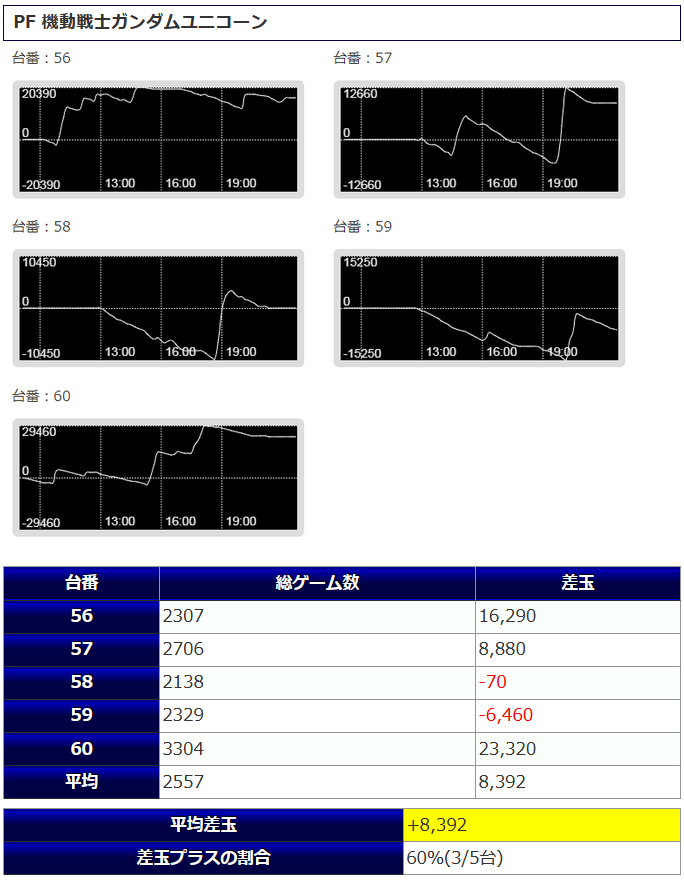 「からくりサーカス」平均稼働3,137回転「ガンダムUC」平均稼働2,697回転と、打ち込みはしっかりされており、沈みながらも追われている台が多く見受けられますので状況は悪くなかったように窺えます。