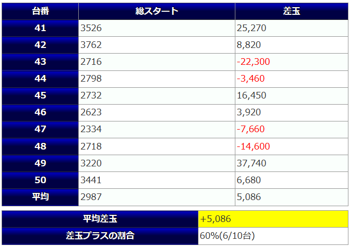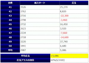 台あたりの平均差玉-254玉
