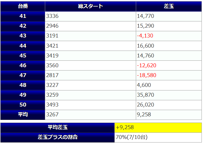 台あたりの平均差枚+47枚