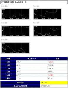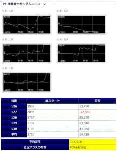 「ベルセルク無双」「とある禁書目録」は僅かにマイナス差玉となってしまいましたが、「とあるレールガン」「ガンダムUC」の2機種はプラス着地となりました。