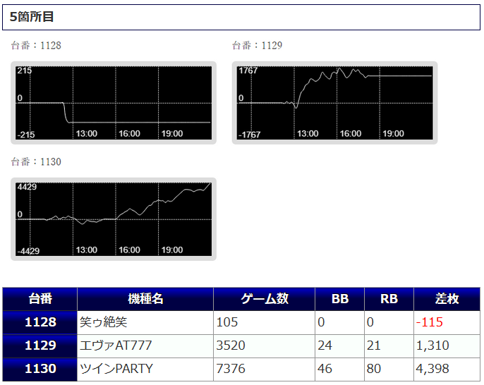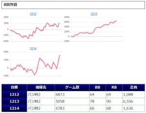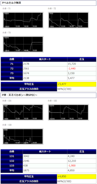 特別大きな差玉はなかったものの、全ての機種で差玉がプラスとなる比較的安定した結果となり、