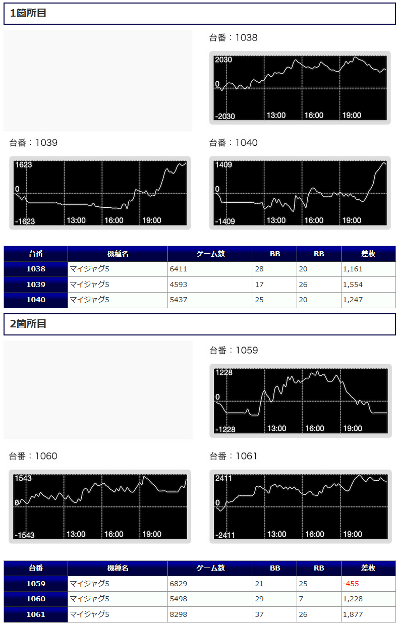 その他にも1&2箇所目の「マイジャグ5」ではなかなか多くの打ち込みが確認され、差枚もそれなりの枚数が付いてきている。