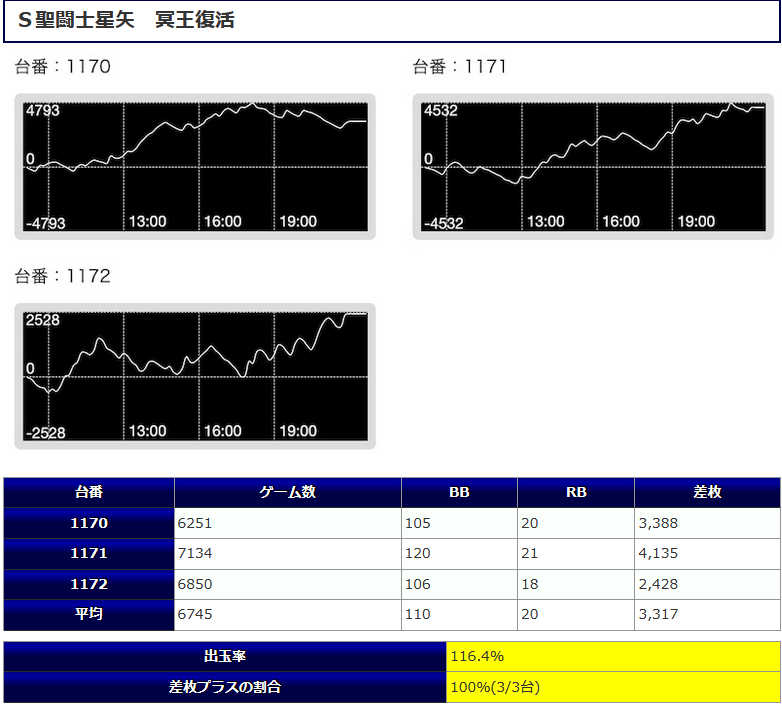 今回はやはり全台系の「星矢冥王復活」が非常に印象に残る結果となったね。