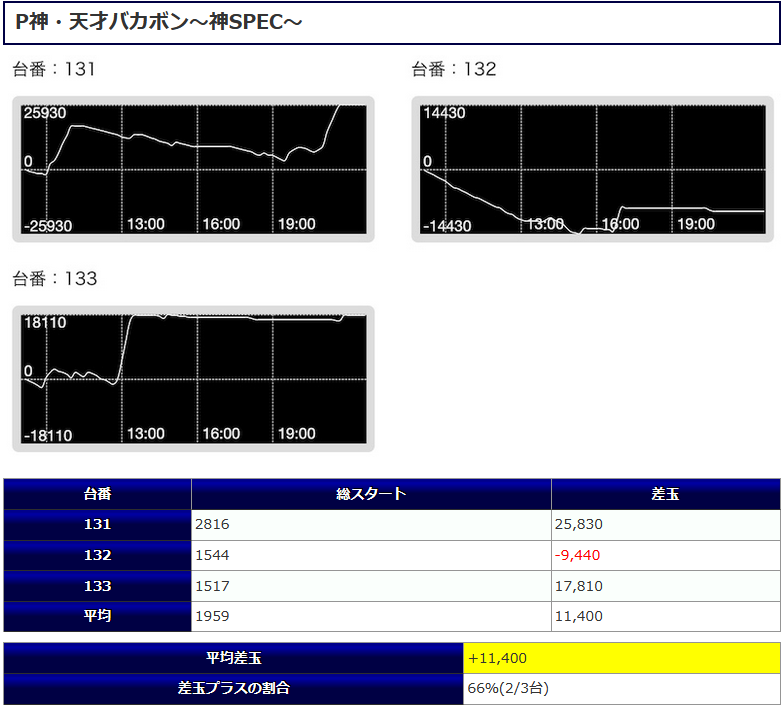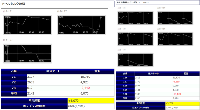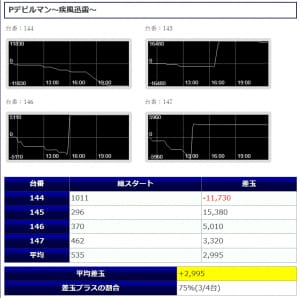 見事3機種中2機種が差玉プラスとなり、結果全体での平均差玉もプラスとなった。