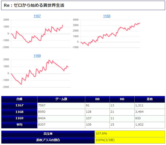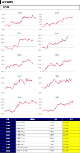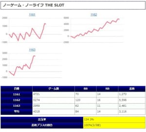 「ノゲノラ」では、1162番台で+5,598と理想的な右肩上がりを魅せ、残る2台も+ 2,481&+1,270と結果を魅せて数字としては勝率100%。