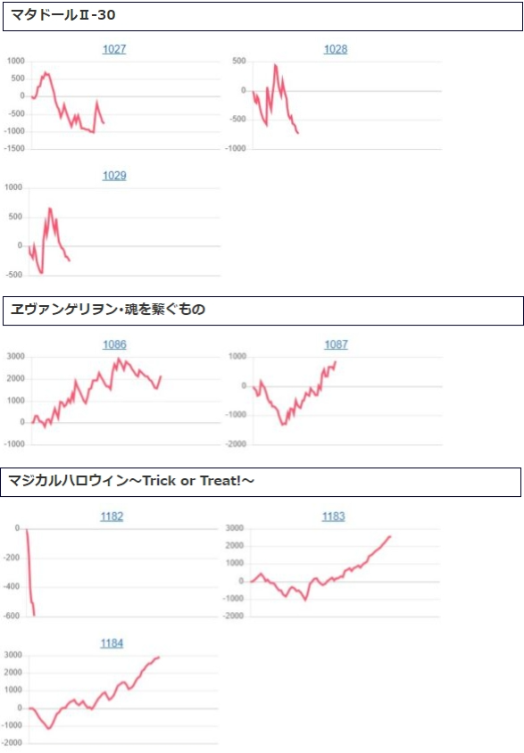 「下二桁ゾロ目全」では、一転結構結果が暴れた様子が見られ、マイナス台も出てしまいました。