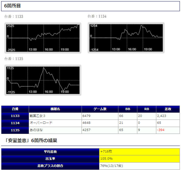 以上がこれまでの同店の傾向の要約。投入傾向も総じて大きく変化も無く、これまでと同様の傾向で攻めて良いと思います。