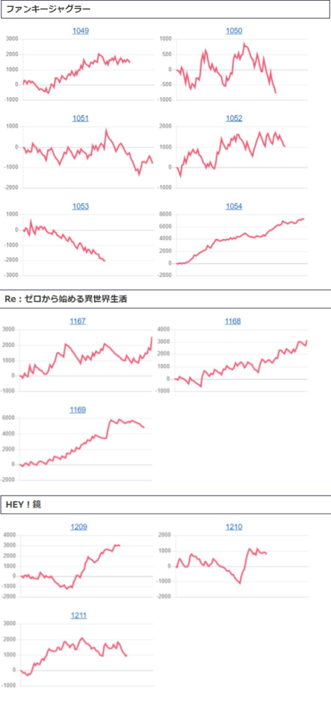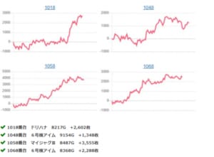 全⑥で用意された「Re:ゼロ」でも+5,647枚を筆頭に平均+3,785枚の勝率100%の完勝。