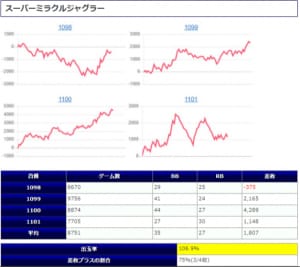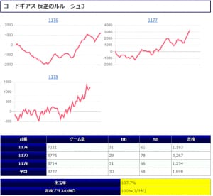 【末尾系】は今回も平均出率105.8%の勝率71%とこちらも公約を超える3/4の投入からジャグハナ系をメインに好結果を示しており、対象となっていたAタイプ群の安定感ある好結果は圧巻。