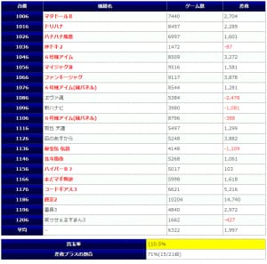 | 台あたりの平均差玉 | -253玉 |