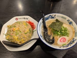 味はいまいちでしたがランチサービスでチャーハンやカレー、餃子+ライスが100円追加で食べられるのが良かったです。