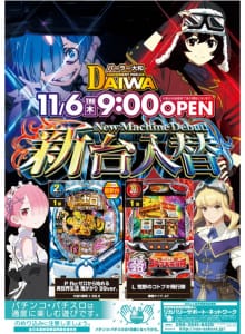6日の新台入替ではリゼロ99ver、コトブキ飛行隊が1台ずつ入るようです。