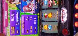 スマスロ北斗、バラエティー辺りが賑わっており、Lマギレコは5台全て満席。その後12時頃にはLサラリーマン金太郎が一番乗りに3000枚突破の記録を叩き出していた。