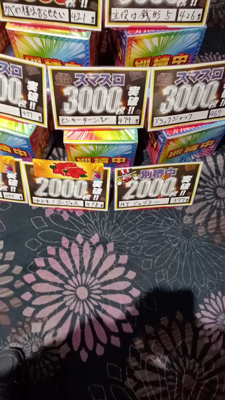 スマスロはモンキー3000枚が2台、北斗,銭形5,SBJが3000枚、GEとかぐやが5000枚
