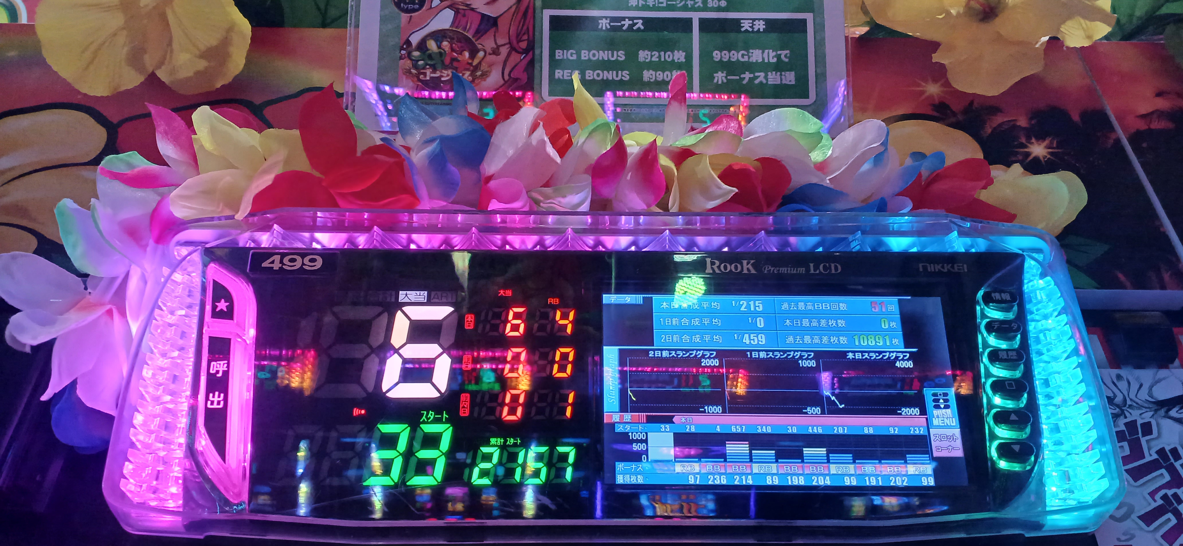 計3連のBB2のRB1、33Gの498枚でヤメ