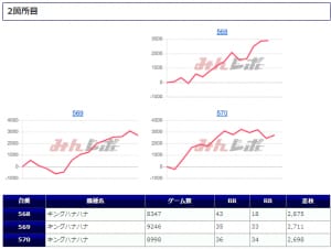全体の結果としても平均差枚+2,155枚と過去2番目の差枚となっており、徐々に頭角を現してきたような印象です。