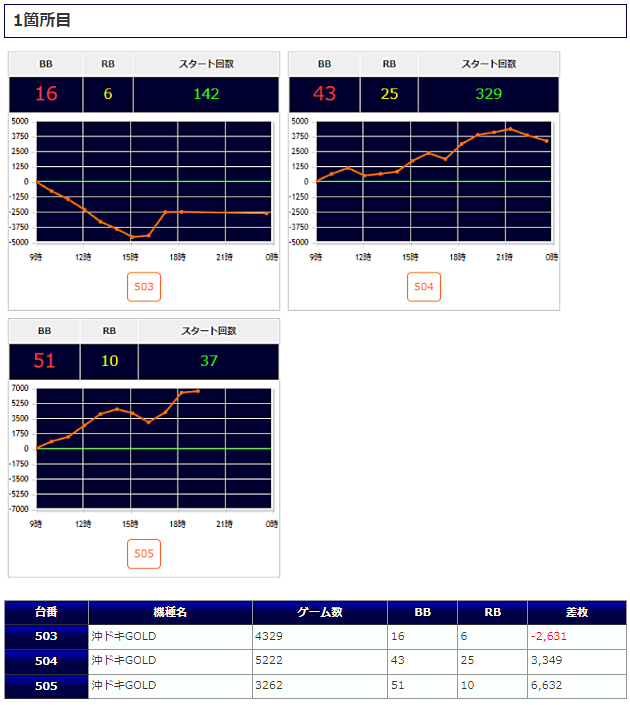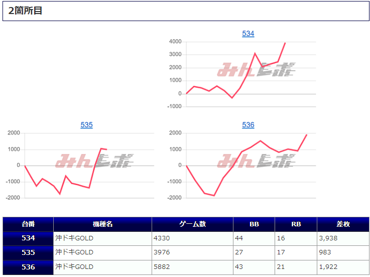 全体としては「沖ドキ系」のマイナスが響いてしまい平均差枚+536枚とやや物足りない結果となってしまいました。
