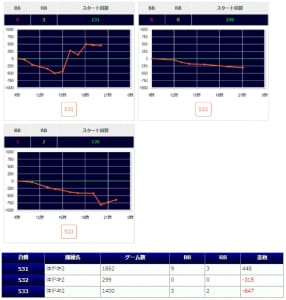 鳳凰天翔に関しては、1台+2,587枚と優秀ではありますが、他2台がマイナス着地となっています。