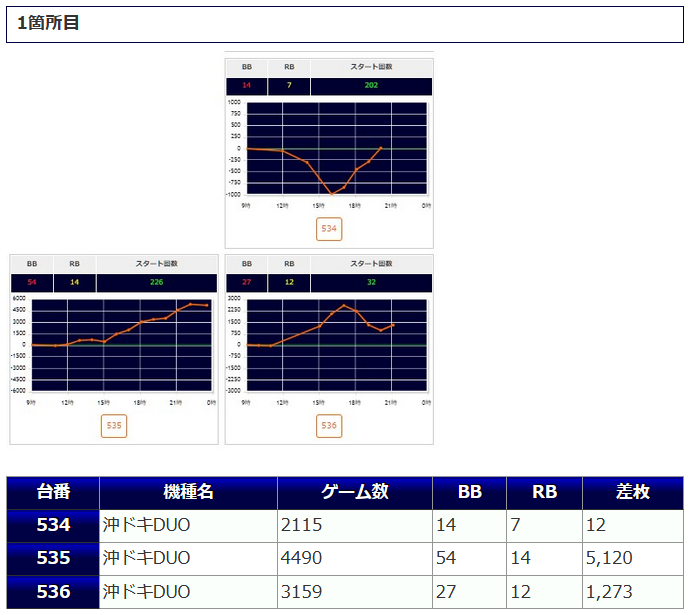 沖ドキDUOは展開に左右されやすい機種である為、勝率を指標とするのは疑問が持たれるところではありますが、3台中、3台がプラスとなる好結果になっています。