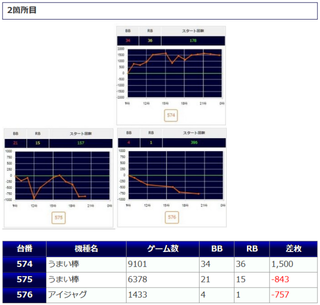 マイナスとなった2台の平均稼働は4,000G程と、埋もれてしまったというには深い稼働量で、2台の合算は1/203とよろしくありません。