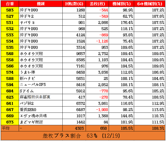 こちらもスロット同様に稼働が若干乏しかったにも拘わらずポテンシャルを発揮し、+52,350発、+31,820発等の強い差玉も飛び出し、