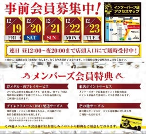 DELGRANDインターパーク店12月26日グランドオープンに伴い12月19日〜23日の間事前会員募集中です。さらに26日〜28日の12時〜22時で混雑防止券を配布しています。