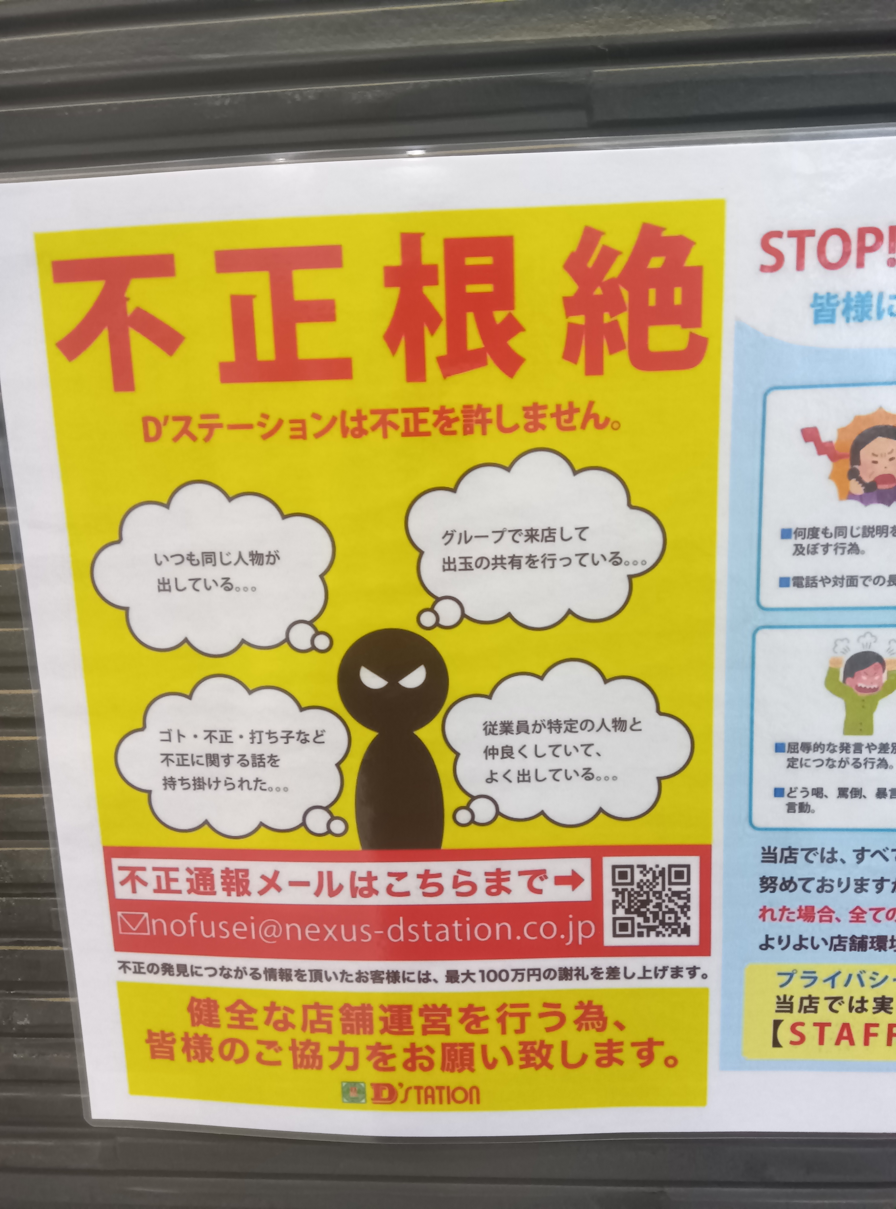 昔みなし機置いてて警察摘発されてたけど、その時出てた客の出玉も没収されてなんの保証も無かったし。クソ対応の店。