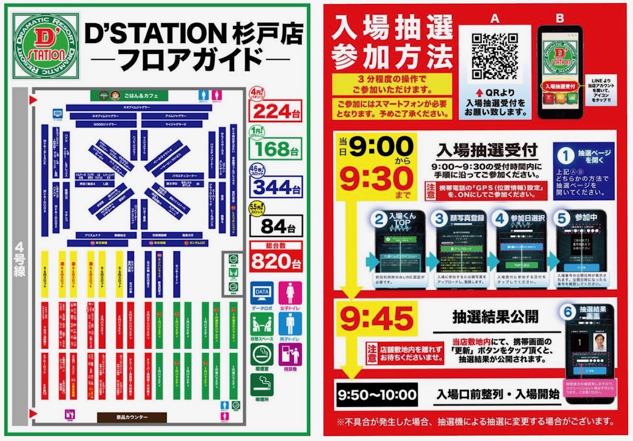 台数パチンコ392台/スロット428台