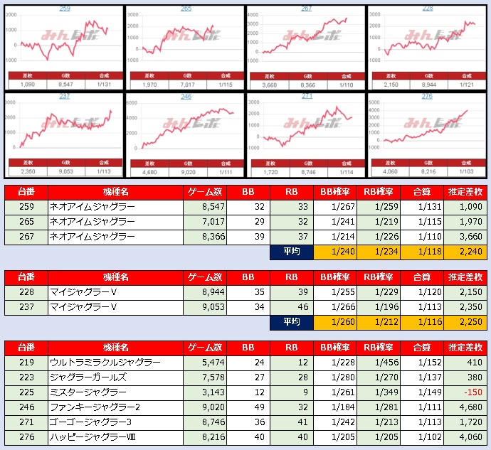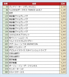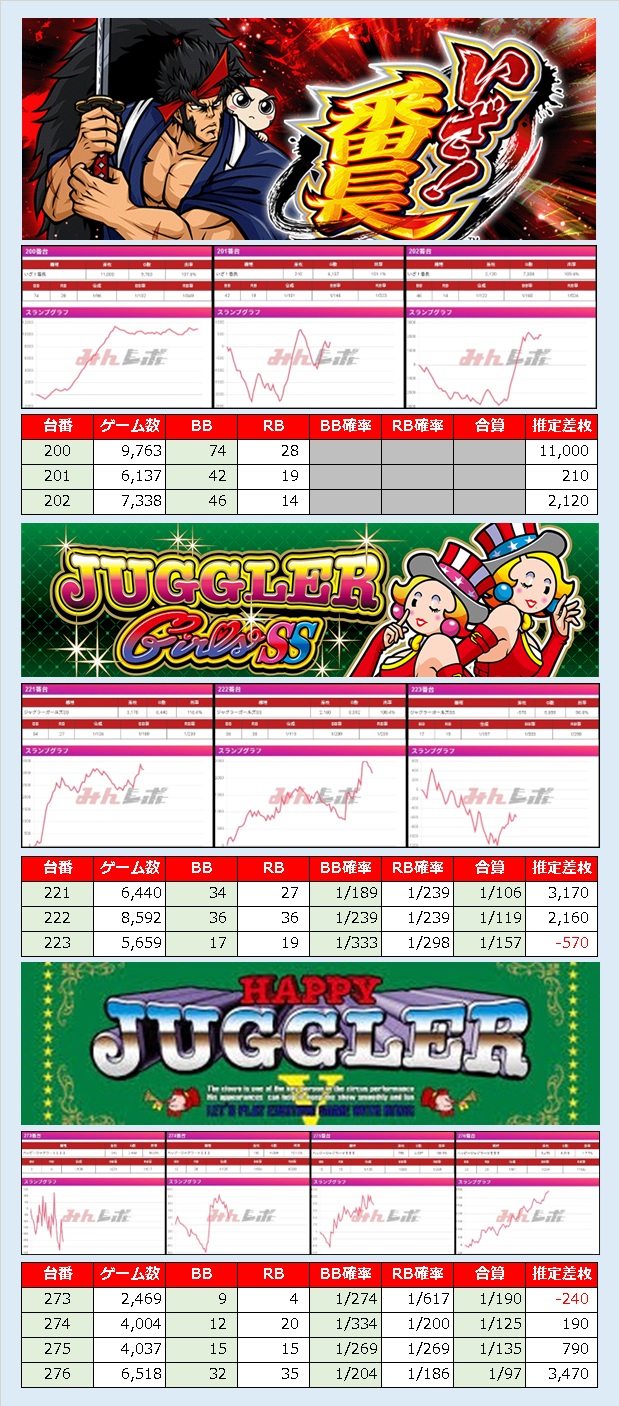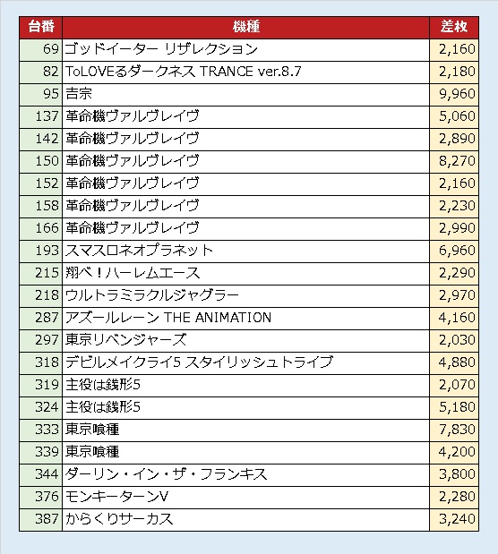 機種単位だと北斗/からくり/ダンベル当たりが良さそうに見えました。