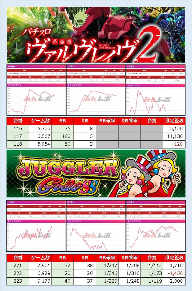 新台増台エリアはもちろん最推しのヴヴヴ等も・・・。