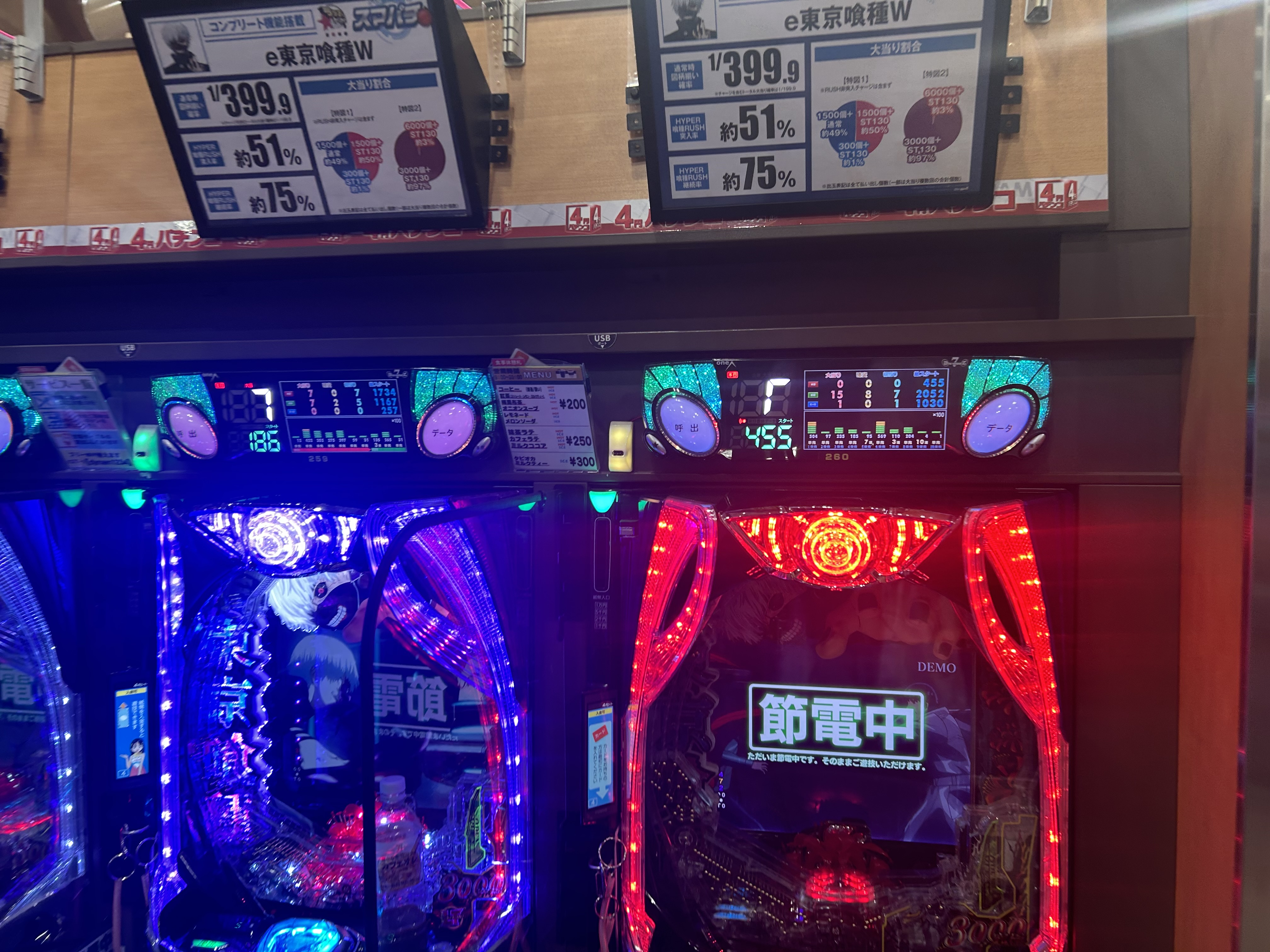設備評価新台やデータ機器の充実度、台間シャッターや肘掛けの有無、Wi-FiやUSBの有無、休憩所や食堂の質、装飾の華やかさ