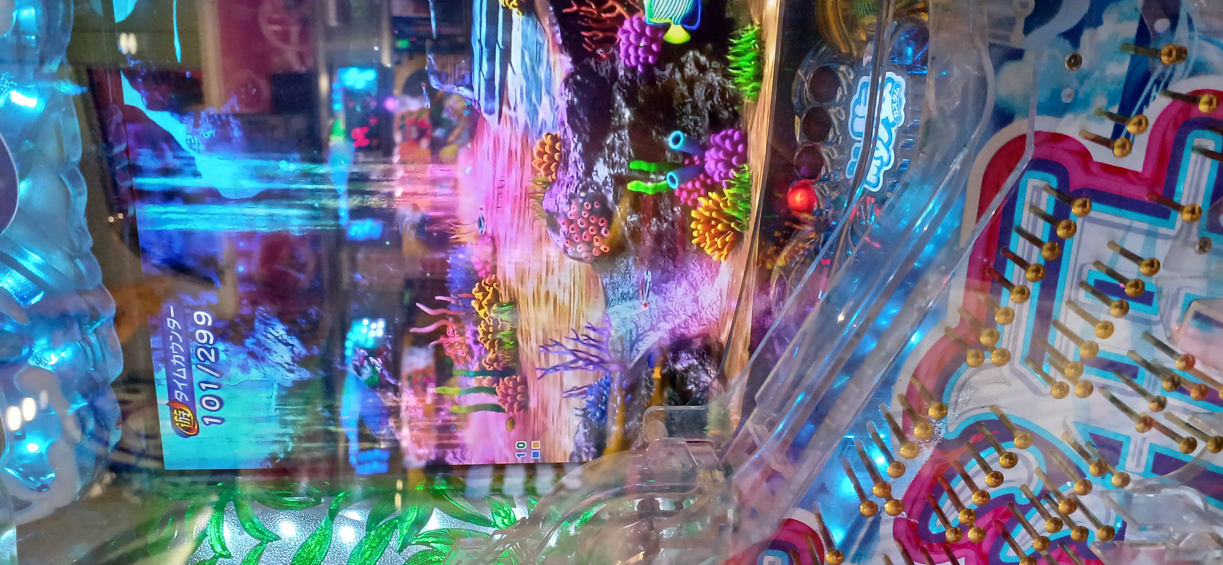 2スロ未確認、20スロはスマスロ、6号機コーナーだけ見て、特に盛り上がってはおらずガラガラ。ジャグラー未確認。4パチは全台空席。1パチは海込みで半分には満たないが、安定して賑わっている。今回も1パチ狙い。