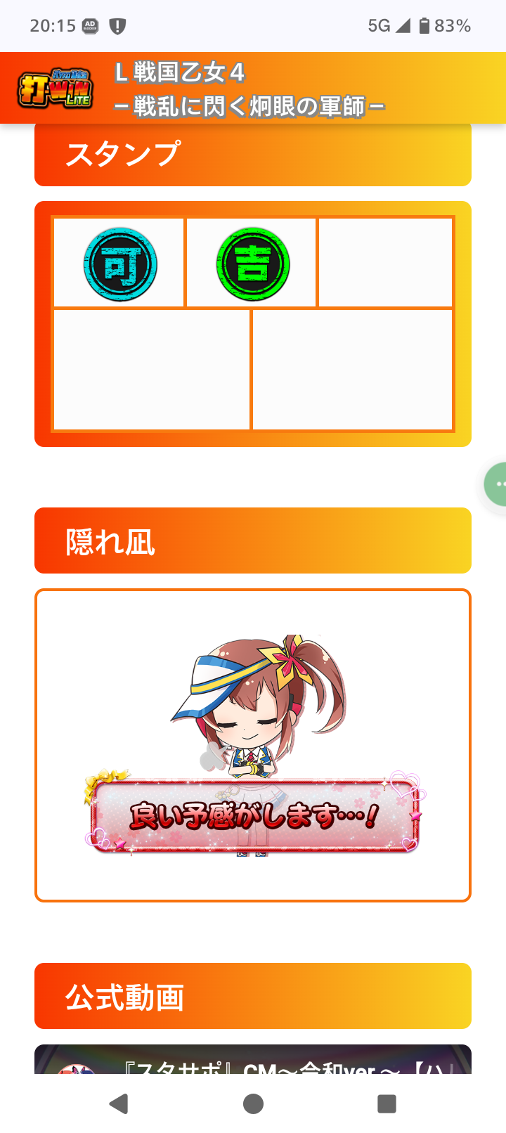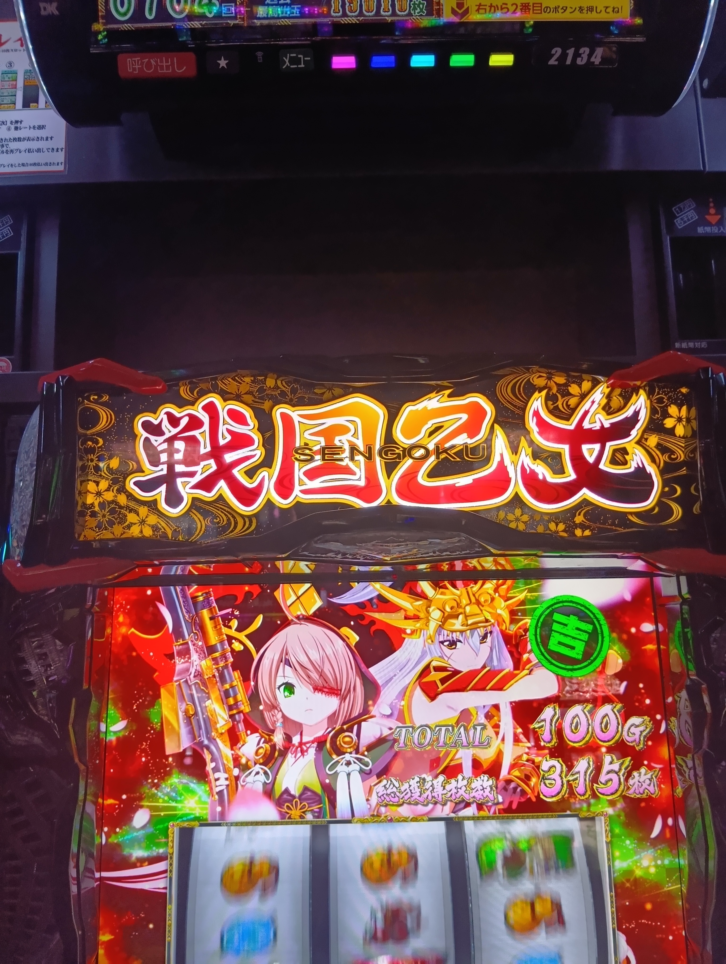 戦国乙女4から終了画面は設定3以上でしたが、隠れ凪で4以上確定(店的に6はないので4>>5)