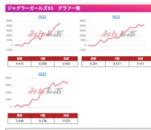 ◎ ジャグラーガールズ 平均+4,020枚(3/3台)