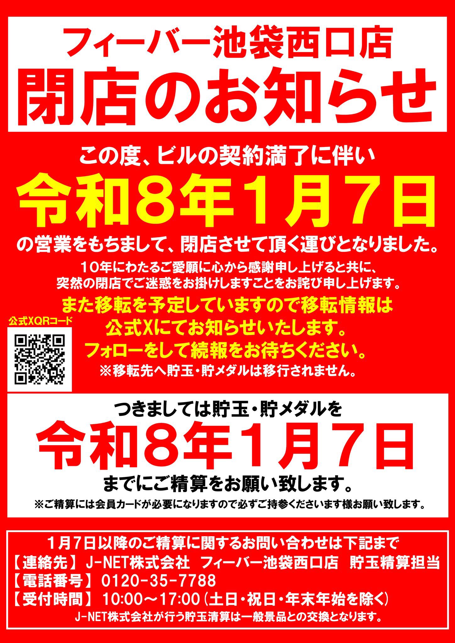 2026年1月7日 閉店