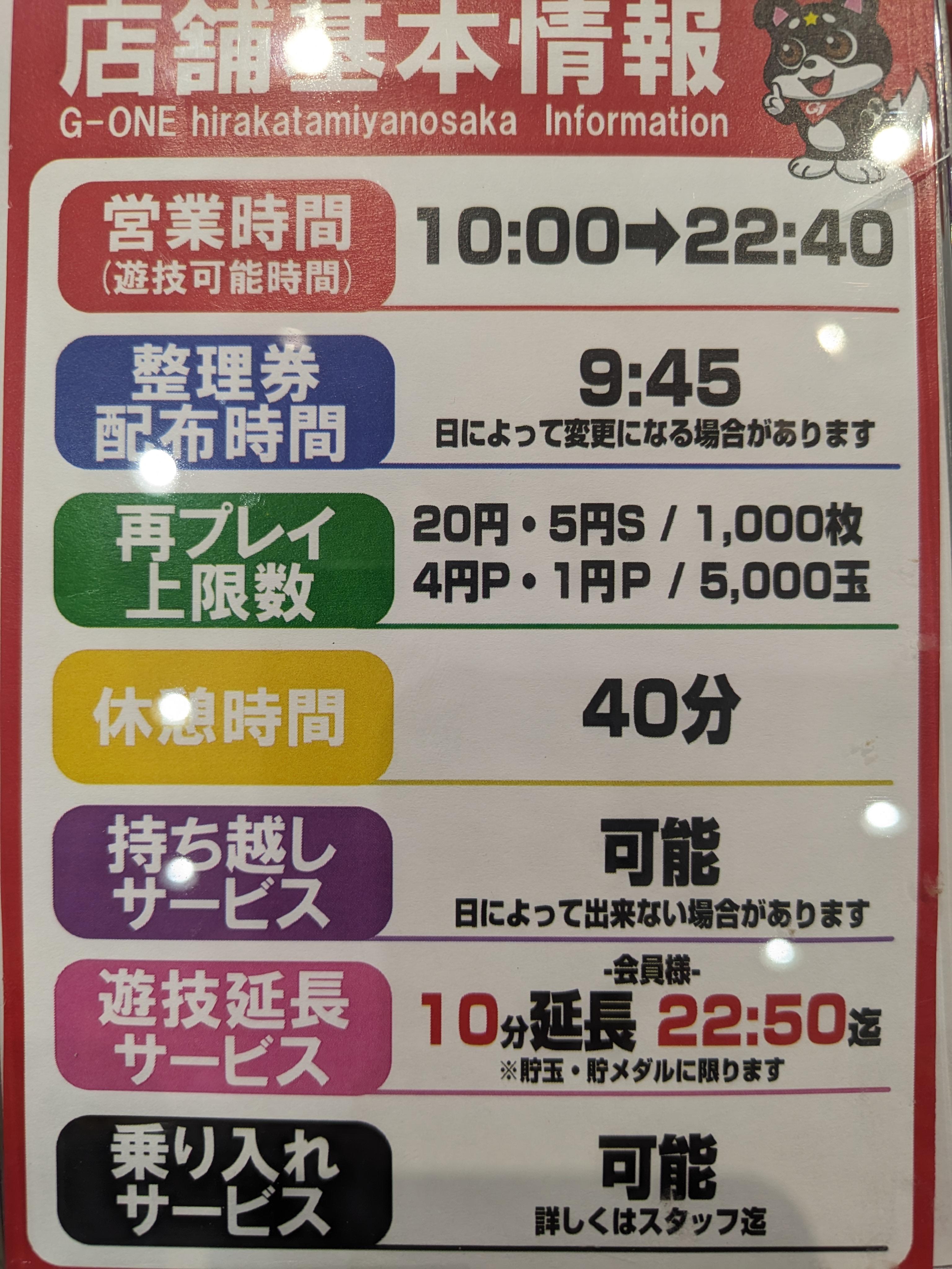 • スロットはジャグラーに全く力を入れてない店。パチンコは4円甘デジを絶対打ったらあかん店、完全回収コーナー。1円コーナーもかなり厳しい状況、kyo-◯chiの方が遊べるかも???