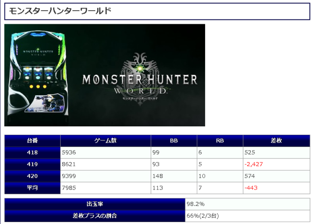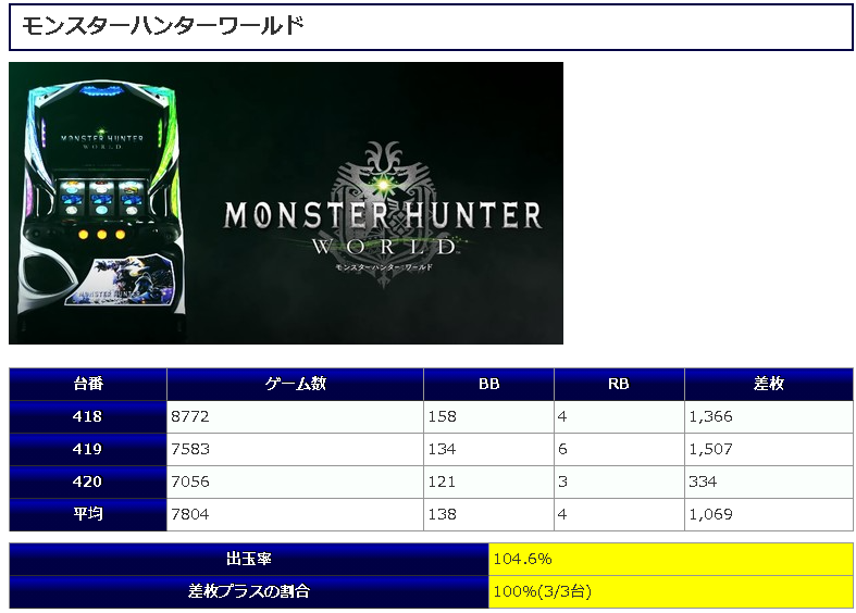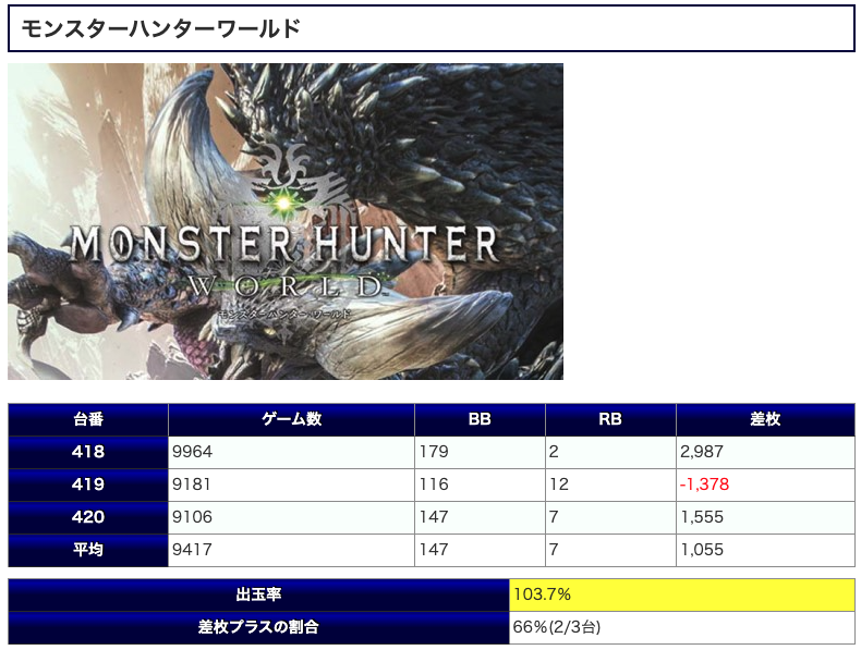 前回のおさらいをしておくと、投入率の非常に高い2機種が選ばれ、モンハンワールド・物語セカンド共に勝率100%を記録しました。