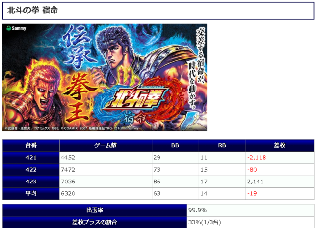 しかし北斗宿命に関しては安定感抜群の機種なので、