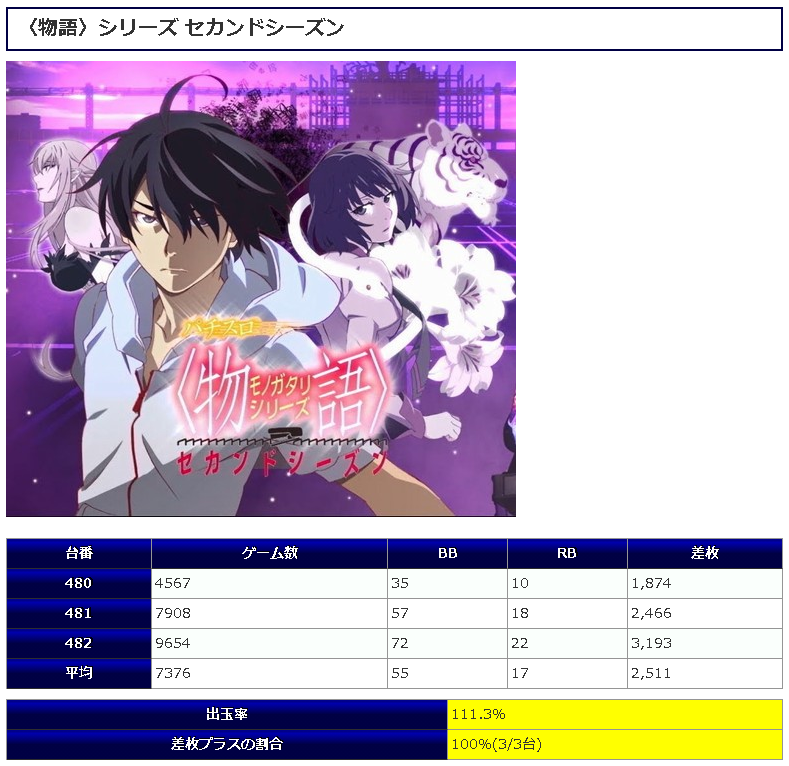 続いて以前までの鉄板機種だった物語セカンド、こちらは全⑤⑥と見て間違いなさそうなデータになっています。
