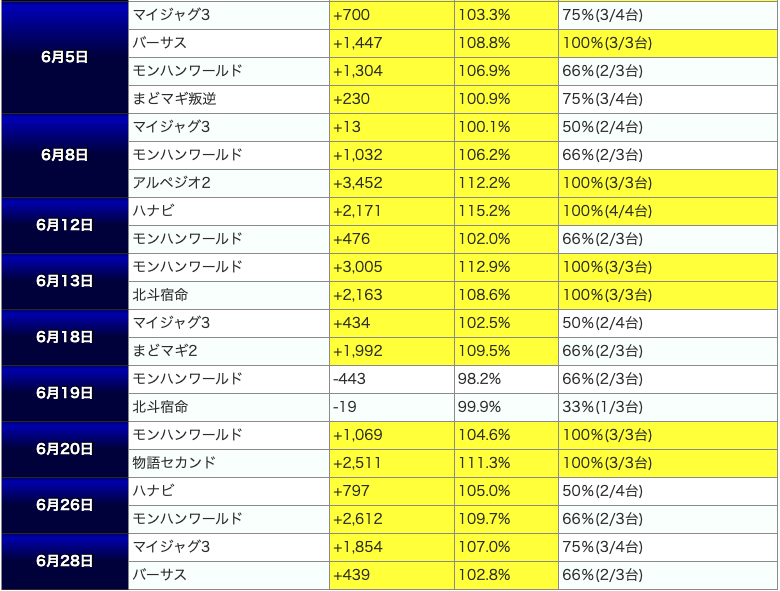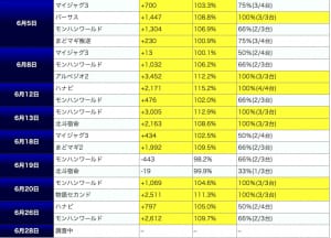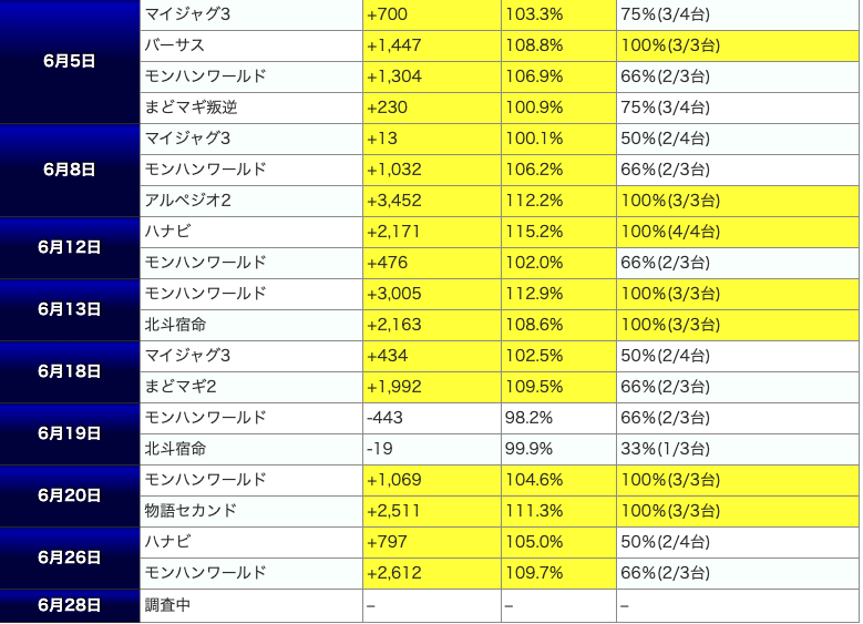 この中で前日6/18に対象になった台を除いて、当日の台選びをすると良いでしょう。