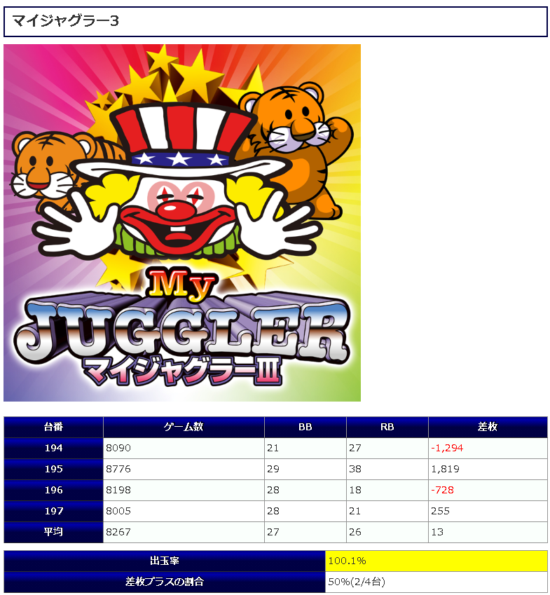 今年に入ってからの特日2のつく日、8のつく日、ジャグラーの5のつく日共に若干渋い。