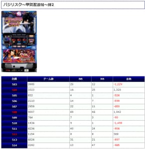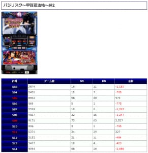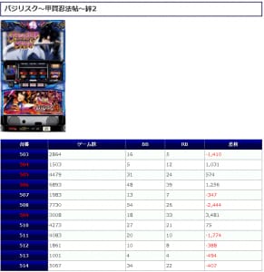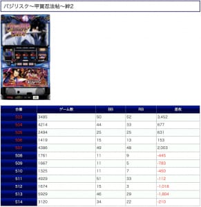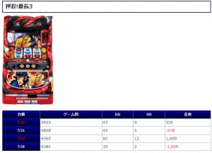 また、今回も設置台数が多い機種で状況が良さそうな機種がいくつかあり、マイジャグ3では+5,448枚、政宗3では+2,000枚超えが3台と相変わらずスロスロの公約以外の箇所でも高設定が用意されていました。
