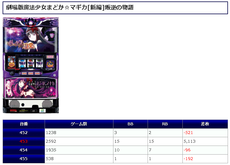 次にこちらも全台系として対象になったまどマギ2ですが、こちらも物語2ndと同じ出率103.1%となんとも中途半端な数値に(^^;)